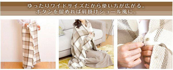 上半身に羽織ってボタ ンを留めれば、あったかショールとしてもお使いいただけます。