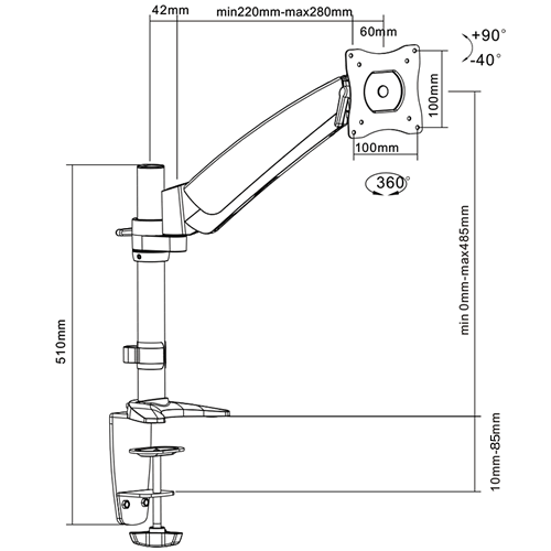 送料無料★VESAマウント規格75mm/100mmに対応した液晶ディスプレイ用アーム★GH-AMC03(4軸タイプ)