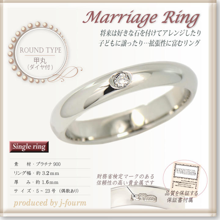 こちらのプラチナ900製甲丸マリッジリングのダイヤ付単品商品となります。