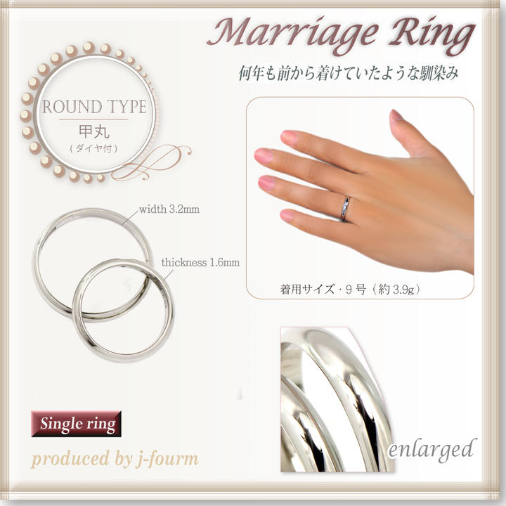 関連商品(画像クリックでジャンプします) ペアでお求めの方はこちら→K18 甲丸K18 平打Pt1000Silver925こちらのプラチナ900製甲丸マリッジリングのダイヤ付単品商品となります。