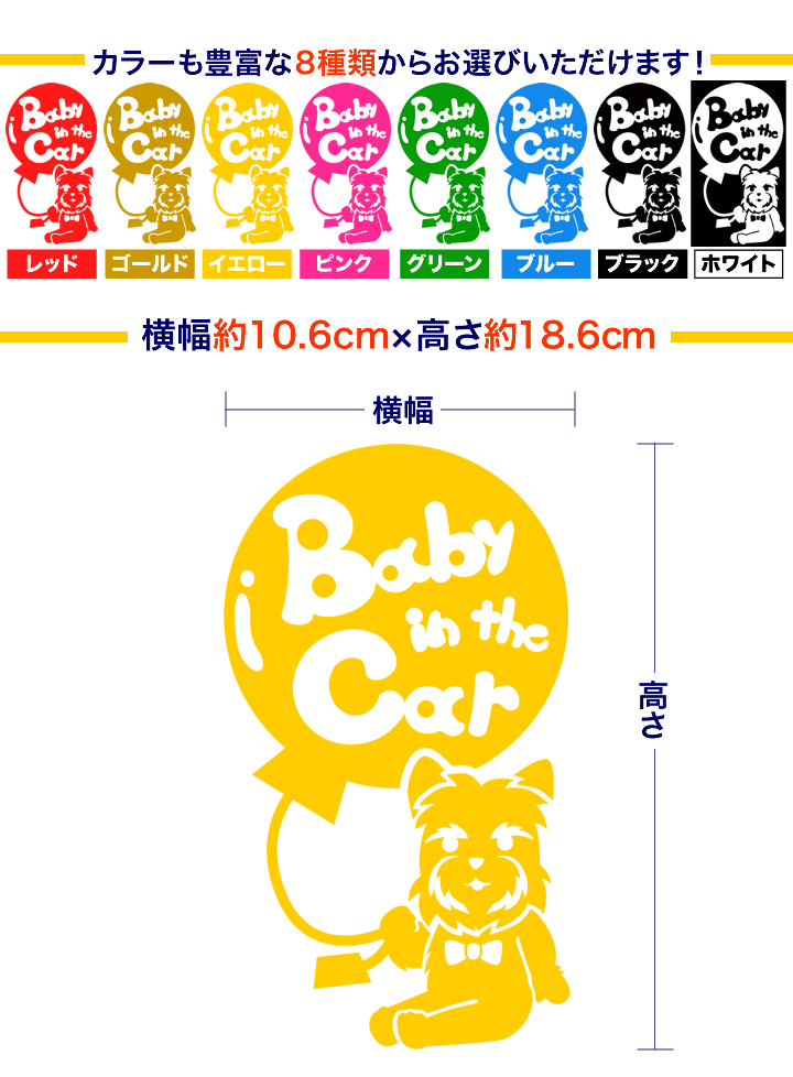 【Baby in the car】犬 ヨークシャテリア 風船戌 干支 動物 ステッカー 窓ガラス用シールタイプ 車 ※吸盤・マグネットタイプではありません 子供が乗っています ベビー イン ザ カー ベビーインカー チャイルドシート ベビーカー 入園入学 プレゼント ギフト