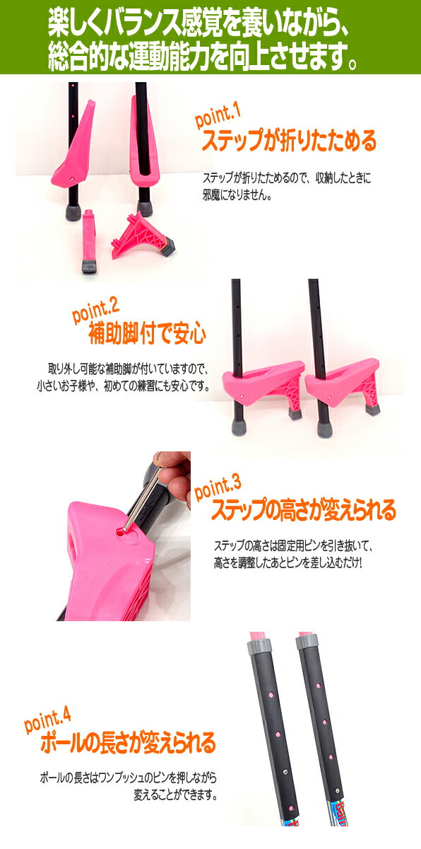 ワンタッチ高さ調節式 パステルカラー竹馬 竹うま たけうま スポーツたけ馬 ピンク ブルー パープル 補助脚 おりたたみ 持ち運び楽々 コンパクト収納 初心者 子供 大人 スポーツ ギフト プレゼント toho