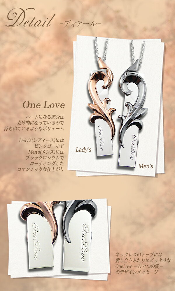ペンダントを合わせるとハートになるOne Love〜1つの愛ペアネックレス。