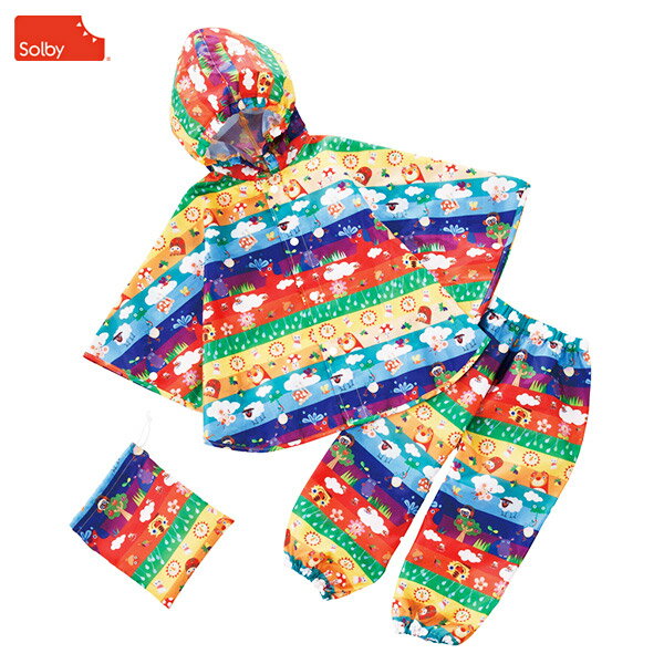 Solby ソルビー ぱんちょ レインポンチョ+パンツ <お天気しましま> 90cm、100cm どんな天気もお出かけ日和♪レインコート .