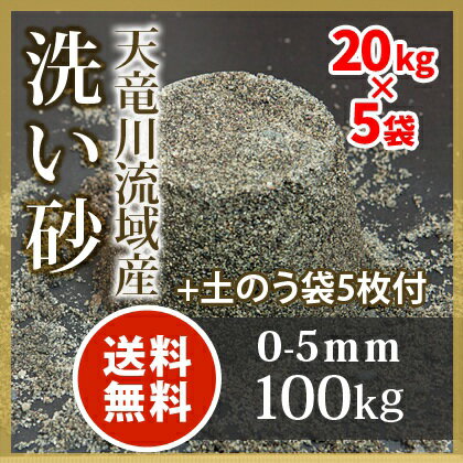 【送料無料】【+土のう袋 5枚】 天竜川流域産 洗い砂 100kg (20kg×5袋) | 0-5mm 庭 砂 すな 洗い砂 洗砂 川砂 土のう 土嚢 災害 ゲリラ豪雨 ガーデニング ガーデン 園芸 芝生 芝 透水性 水はけ 国産 天竜川 天然 放射線量報告書付