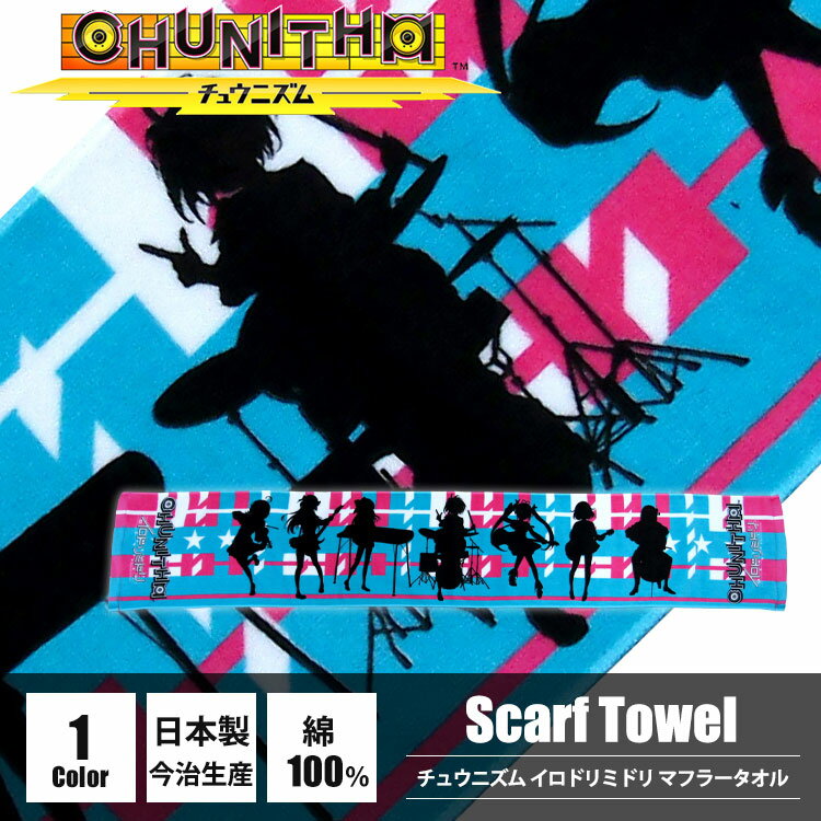 【チュウニズム】イロドリミドリ マフラータオル キャラクター シルエット 日本製(今治生産)【SEGA】 CHUNITHM アーケード 音楽 ゲーム キャラ グッズ プリント 中2 厨ニ 綿 100% コッカ 生地