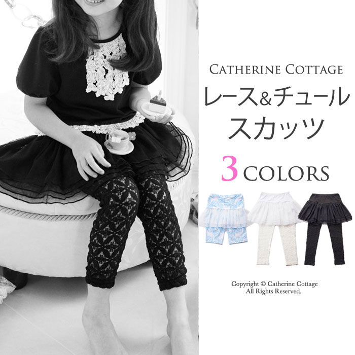 <キーワード> [黒][白][100/110cm][120/130cm][140/150cm][160cm対応] <キーワード> [キャサリンアリスコレクション*レギンス・パンツ] スカート フォーマル カジュアル 普段着 発表会 ダンス衣装 おしゃれ かわいい 春 楽天 通販] 【キャサリンコテージ】キッズ レギンス 通園・通学に レース&チュールスカッツ レース&チュールスカッツ C a t h e r i n e C o t t a g e レギンスとチュールスカートを合わせたスカッツです。